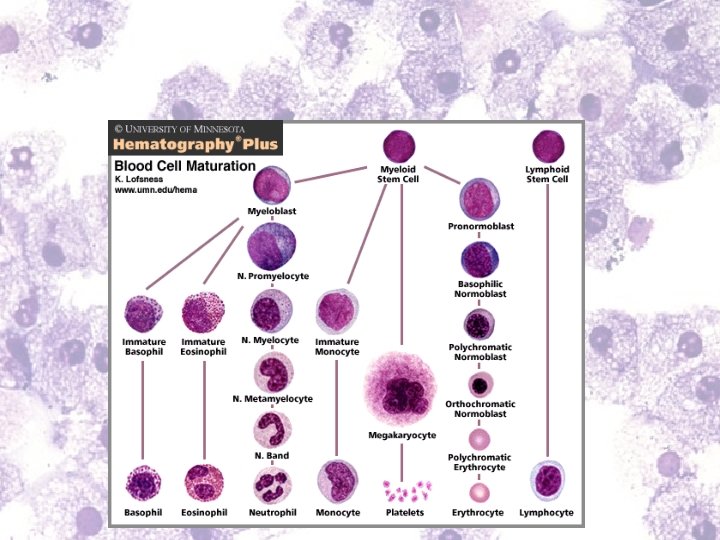 Pematangan sel Granulosit • Pematangan Granulosit dibagi kedalam enam tahap: • Perubahan struktural: • • Penurunan bentul sel Pemadatan kromatin nuclear Perubahan inti lapisan sel Akumulasi sitoplasma granule