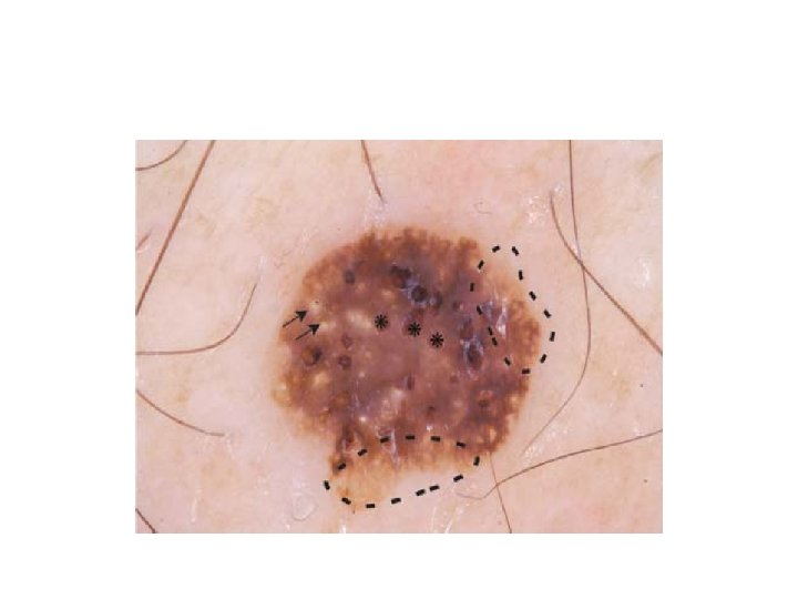 Level 3: Criteria for SK • • Multiple milia-like cysts Comedo-like openings Moth-eaten borders Network-like structures “Fissures and ridges” ( gyri and sulci) Fat finger-like structures Light brown fingerprint-like structures