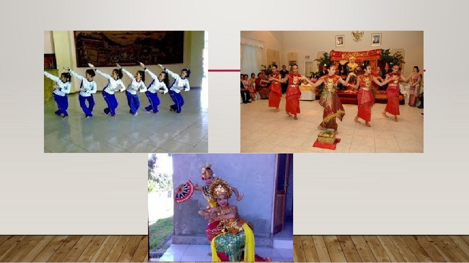 PENERAPAN POLA LANTAI PADA TARI TRADISIONAL • Tari Srimpi merupakan tari klasik Gaya Yogyakarta. Ada beberapa macam Tari Srimpi antara lain, Srimpi Irim-irim, Srimpi Pandhelori, Srimpi Renggowati. Tari Srimpi ditarikan oleh 4 orang kecuali Srimpi Renggowati ditarikan oleh 5 orang. Pola lantai lengkung terbentuk dari gerak atau perpindahan yang dilakukan oleh penari. Secara kasat mata pola lantai yang nampak terlihat adalah pola lantai garis lurus antara lain, persegi empat, diagonal, horizontal.