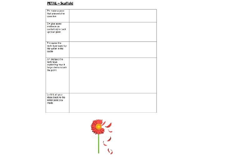 Scaffolds needed • • PETAL scaffold PETAAAAAL scaffold critical language glossary Introduction and conclusion scaffold Venn Diagram comparative language glossary the rubric contextual information scaffold