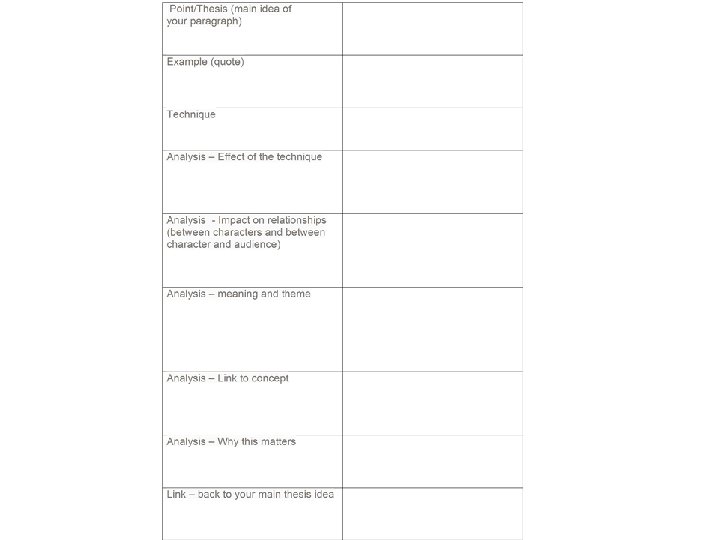 Level 2 - Some form of Introduction/ body/ conclusion - Body consists of some PETAL paragraphs (2 -3) that mention ideas in the text with some evidence from the text (technique/quote per paragraph) TO LEVEL UP TO 3…. - Use the PETAAAAAL scaffold to put more depth in your paragraphs. Remember you will need multiple techniques (3+) and 2 -3 quotes to make your point - Use the critical language glossary and try to use some of these words effectively in your essay
