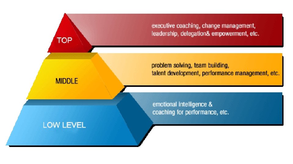 Middle Management • Branch managers • Departmental managers • Report to top management • Responsible for organisational and directional functions • Execute the plans the Top Management make
