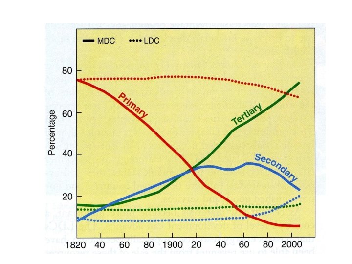 What is important to understand about this? • Less developed countries depend on primary and secondary economic activities • More developed countries have economies based on Tertiary, Quaternary and Quinary activities