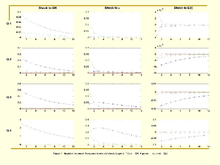 Impulse response function ² A shock from QR a®ect s QR; ¾and r ¹ persist ent ly. ² Volat ility shock a®ect s leverage when leverage rat io is high. ² Shock from required ret urn a®ect s all variables negat ively.