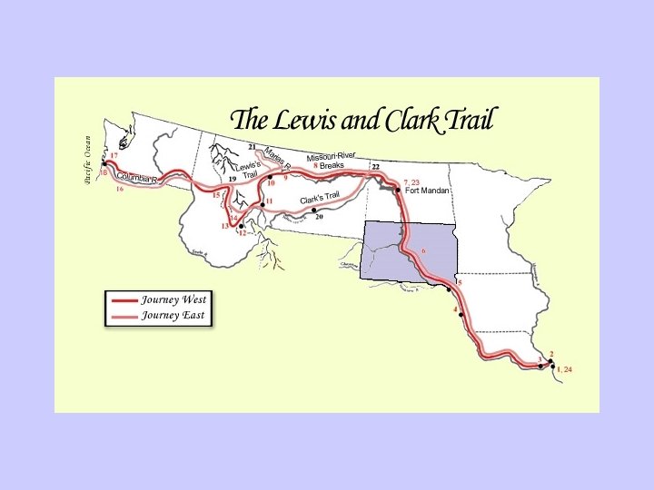 Lewis and Clark 1804 1806 Linda Harris TTLPara Slides: 23 Download presentation Lewis and Clark 1804 -1806 Linda Harris TTL-Para Parkston, SD Lewis and Clark leave St. Louis in May of 1804 1 st official meeting of whites and western Indian tribes at Council Bluffs in 1804 The only casualty on the entire trip August – October 1804 Lewis and Clark met The Indian tribes of South Dakota The Yanktons were Hunters and traders Who lived near Gavins Point Dam Lewis and Clark met the Lakota, or Teton, Indians in central South Dakota The Arikaras were a farming tribe who Welcomed Lewis and Clark Lewis and Clark spent the winter of 1804 In a Mandan Indian village Sacagawea and her infant son Pomp were Guides for Lewis and Clark on their journey west June 1805 Great Falls of the Missouri River Lemhi Pass August 1805 No river leading to the Pacific Ocean In Idaho Lewis and Clark Met the Shoshone Indians Sacagawea is the sister of the chief The explorers buy horses to cross the Mountains for eleven days The Nez Perce teach Lewis and Clark to make Canoes from logs to speed down the Snake And Columbia Rivers toward the ocean Mt. Hood Pacific Ocean ahead! Fort Clatsop Winter of 1805 Pompy’s Pillar is named for Sacagawea’s son July 1806 In the only battle of the whole Expedition, two Blackfeet warriors are killed Sacagawea says good-bye in August 1806 Lewis and Clark arrived back in St. Louis on September 23, 1806 To a hero’s welcome Lewis and Clark are remembered today • Statues • Books • Parades • Reenactments • Trail Markers • Celebrations • Museums Pictures taken from: • www. altavista. com/image/default • www. sd 4 history. com Timeline guide taken from: • www. sd 4 history. com THE END