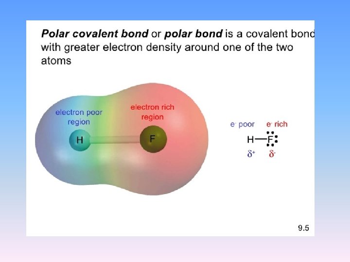 Polarity • Property of molecules that can be explained by their molecular shape • the atoms that make up a molecule have different electronegativities The result? Polar bonds – the electrons are shared unequally When there is this “unbalance” the molecule is having a dipole moment.