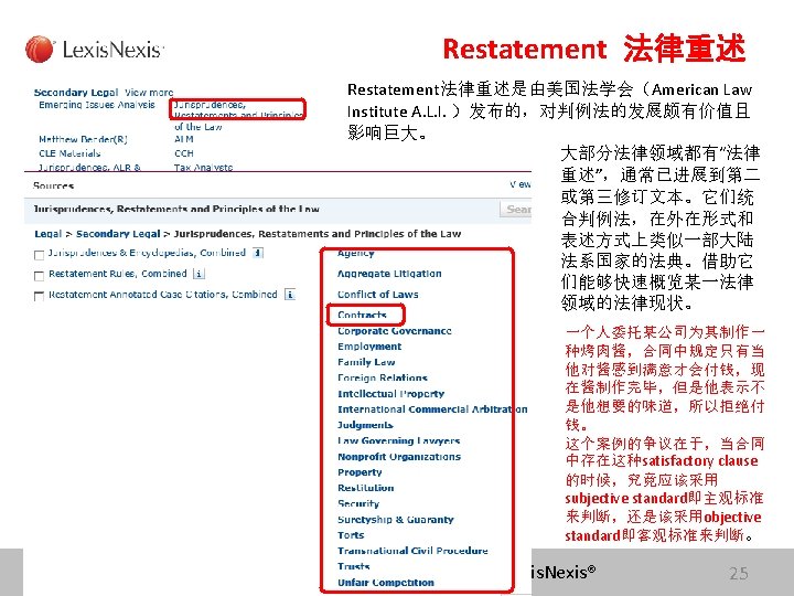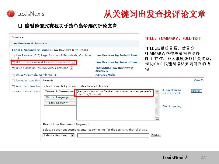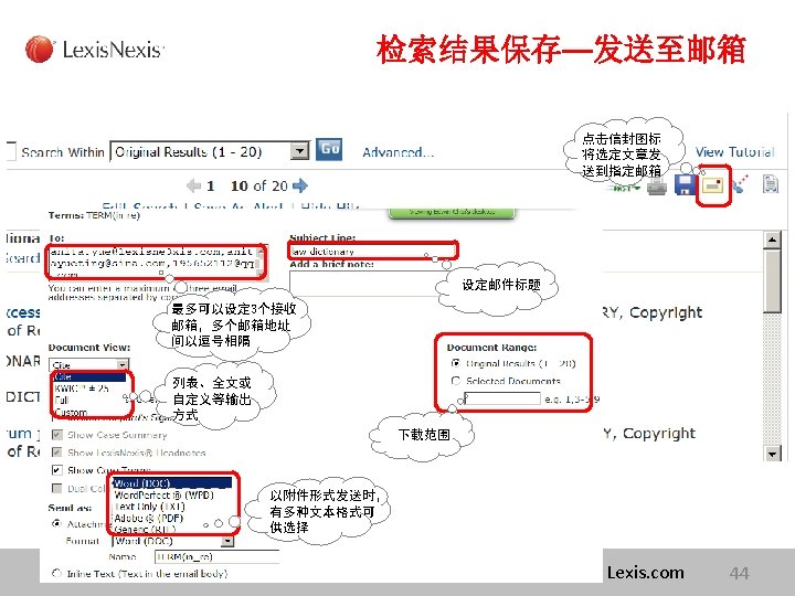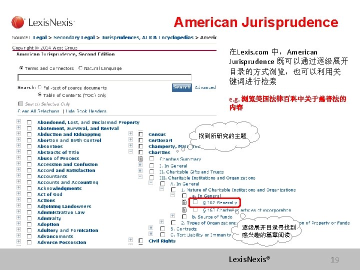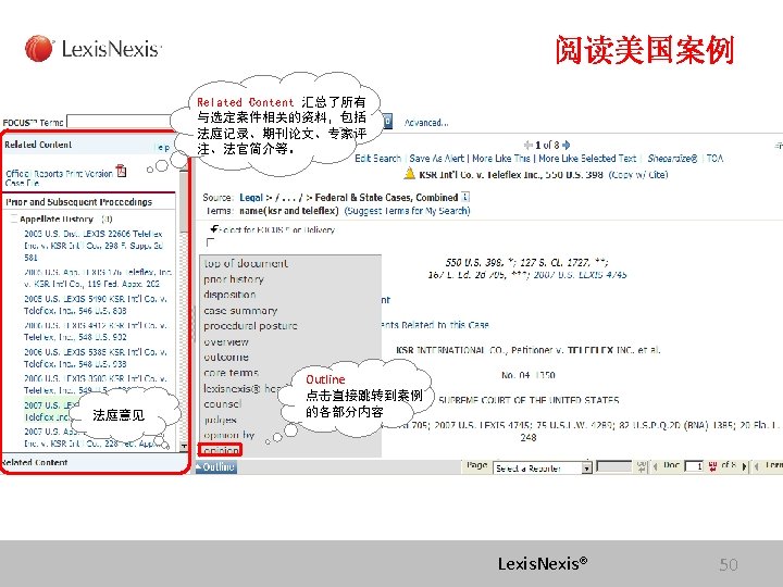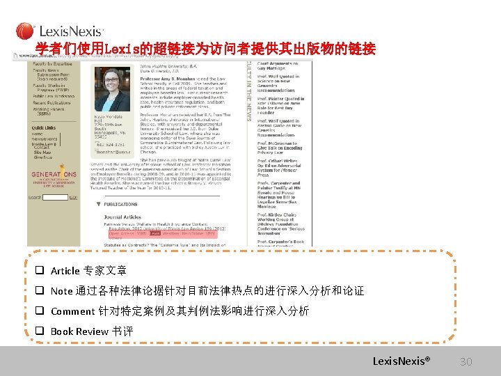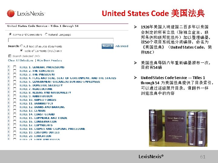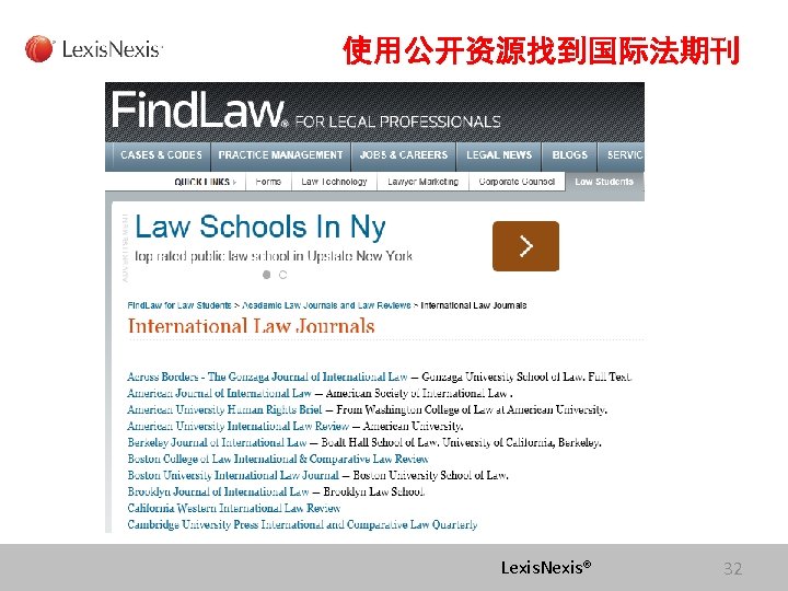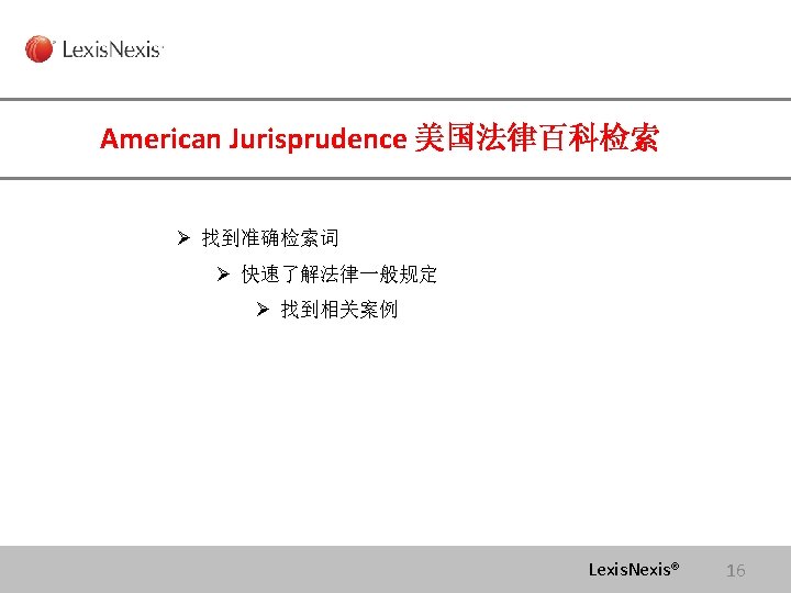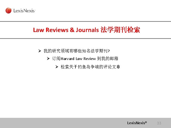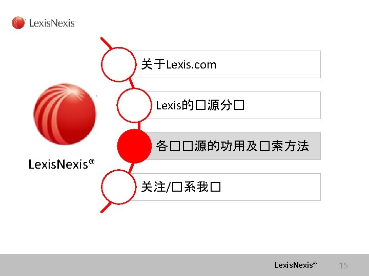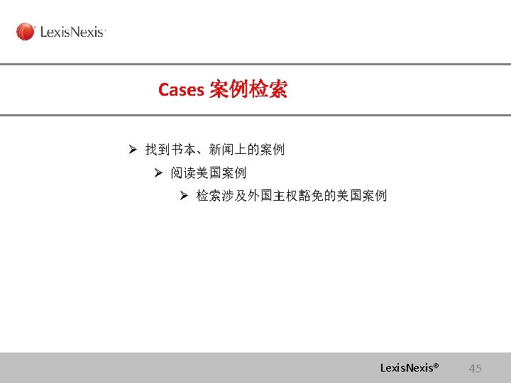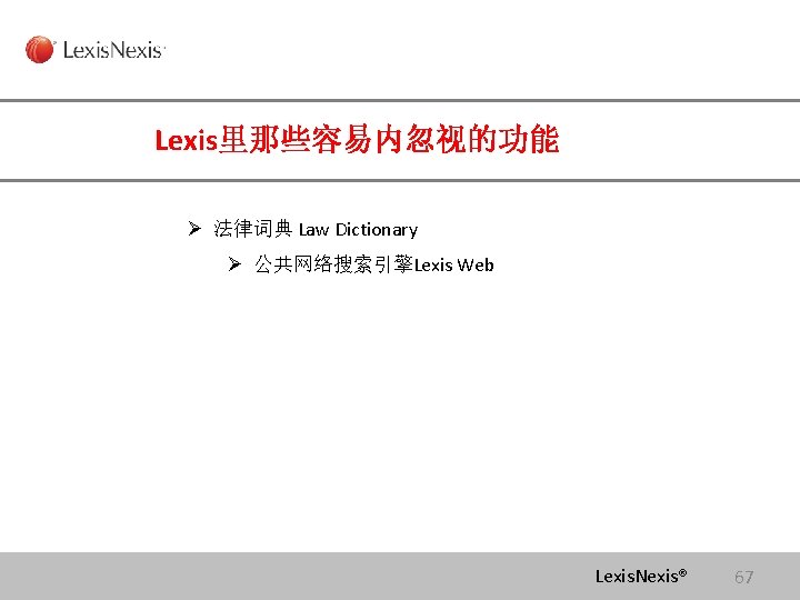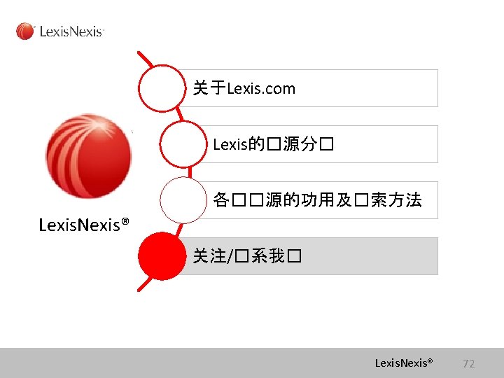 Lexis com Cases Legislation Law Reviews News Anita Slides: 75 Download presentation Lexis. com® 全球法律信息数据库 Cases, Legislation, Law Reviews & News Anita Yue 岳亭 Lexis. Nexis Application Consultant Tel: 18612398761 Email:anita. yue@lexisnexis. com Lexis. com资源分类 点击All 查看Lexis的 资源分类 点击Legal获得法 律资源列表 Lexis. Nexis® Lexis. com 8 American Jurisprudence 在Secondary Legal 下找 到Jurisprudences, ALR & Encyclopedias 二 次 法 律 文 献 Lexis. Nexis® Lexis. com 18 American Jurisprudence 检索关于隐名股东的评论文章 隐名股东= Dormant Partner??? Lexis. Nexis® 21 American Jurisprudence Lexis. Nexis® 23 Restatement 法律重述 Lexis. Nexis® 24 Restatement 法律重述 Lexis. Nexis® 26 Restatement 法律重述 Lexis. Nexis® 27 使用公开资源找到国际法期刊 http: //stu. findlaw. com/journals/index. html Lexis. Nexis® 31 找到书本、新闻上的案例 Party Name Citation Lexis. Nexis® 46 Get a Document——By Citation 1点击Get a Document 2 点击By Citation 3 输入Citation 4 点击Get Lexis. Nexis® 47 Counsel 辩护律师 Judges 法官 Opinion By 撰写法庭意见的法官 Opinion 法庭意见 Concurring Opinion & Dissenting Opinion Lexis. Nexis® 53 Legislation & Regulations 法律法规检索 Ø 美国法典 United States Code Ø 联邦行政法典 Code of Federal Regulations Lexis. Nexis® 60 United States Code 美国法典 Lexis. Nexis® 63 Legislation & Regulations 法律法规检索 Ø 美国法典 United States Code Ø 联邦行政法典 Code of Federal Regulations Lexis. Nexis® 64 Law Dictionary Lexis. com 中收录了大 量的法律词典,可以利 用Find A Source 功能 找到它们 Lexis. Nexis® 68 联系方式 客服热线: 4006008680 (8610)85208666 培训师:Tel:(8610)85208616 岳亭 Mobile: 18612398761 E-mail: anita. yue@lexisnexis. com Lexis. Nexis® 73 Q&A Lexis. Nexis® Lexis® 75