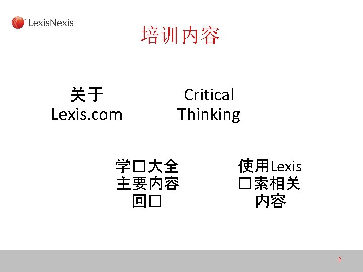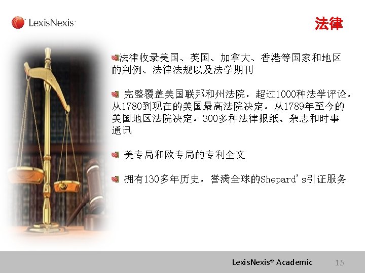 Lexis. Nexis ® Academic 学术大全数据库 Lexis. Nexis® 律商联讯