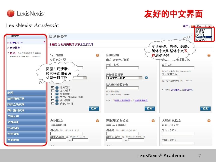 六个语种的非英语新闻 Lexis. Nexis® Academic 14