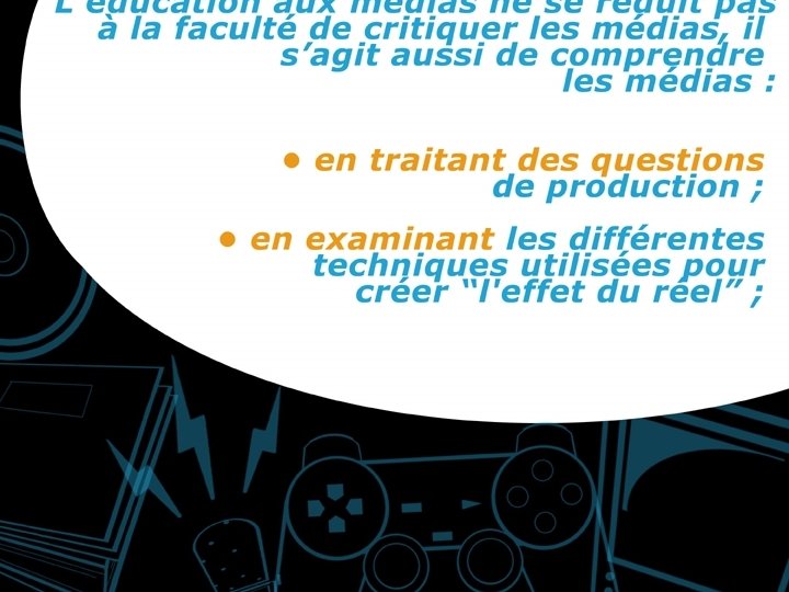 Les industries médiatiques sur lesquelles l’école n'a pas de contrôle alimentent, animent et influencent sans arrêt la vie intellectuelle, affective et sociale des jeunes par la diffusion de " documents " issus de sources multiples en dehors de la vie scolaire