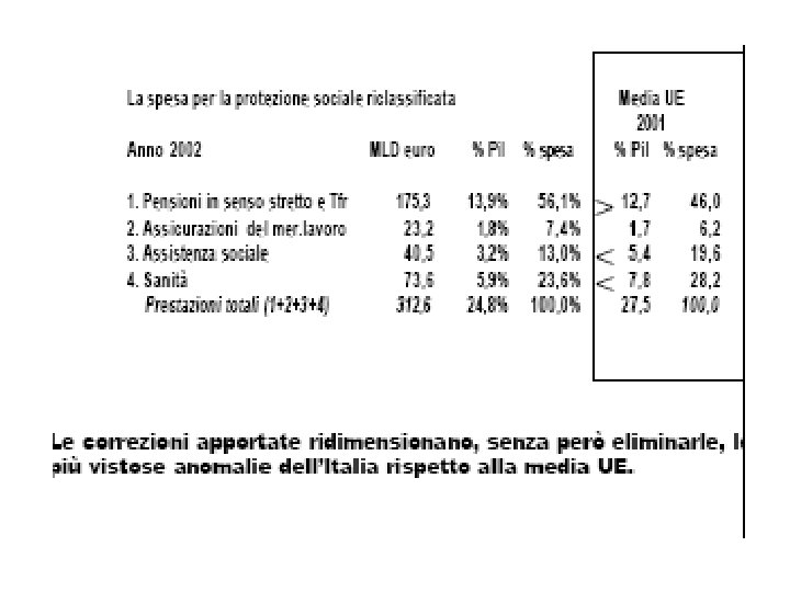 IMPORTANTE Una componente molto elevata delle prestazioni di Protezione sociale è costituita da trasferimenti monetari (condizionati o meno) e da servizi alla persona (istruzione, sanità, cura alla persona) che NON appartengono alla categoria dei beni pubblici puri