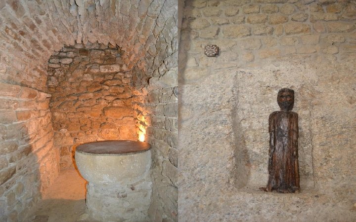 • Le silence règne ici en maitre absolu, sans aucune concession aux rumeurs de ce siècle. • Vals s’est endormi, il y a quelques siècles de cela. • Nous sommes là dans les restes de l’édifice du Xème siècle. • Cela fait 1000 ans que le temps dort, blotti dans un coin sombre, laissant le visiteur remonter en silence sur l’échelle du temps. L’émotion nous guide jusqu’à la lumière, et à l’émotion succède l’éblouissement. Chuttt , nous y allons !