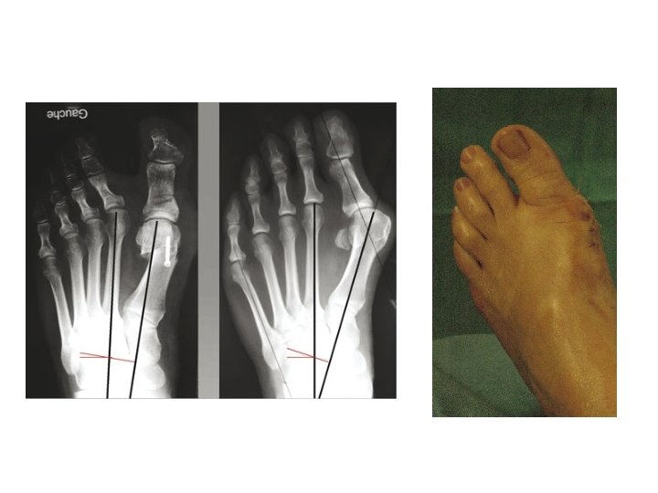 Les principes de l’intervention • • Raboter la bosse (l’oignon) Libérer les rétractions Enlever un coin au niveau de la 1ère phalange Translater la tête du 1 er métatarsien