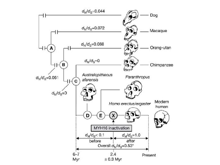 Quelques exemples • Le gène MYH 16 et ses mutations • Le gène du language (FOXP 2) • Les gènes de la microcéphaline • L’ARN HARF 1 • Des gènes plus vulgaires … (ex: SIGLEC)