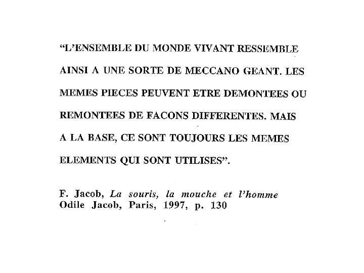 Les variations sont régulatrices • Les résultats de King et Wilson (1975) • L’idée de bricolage (François Jacob) • L’approche de la génomique structurale n’est pas la meilleure