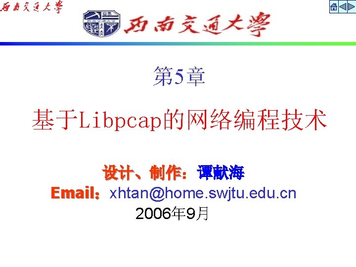 第 6章 Libnet 设计、制作:谭献海 设计、制作 Email:xhtan@home. swjtu. edu. cn 2006年 9月