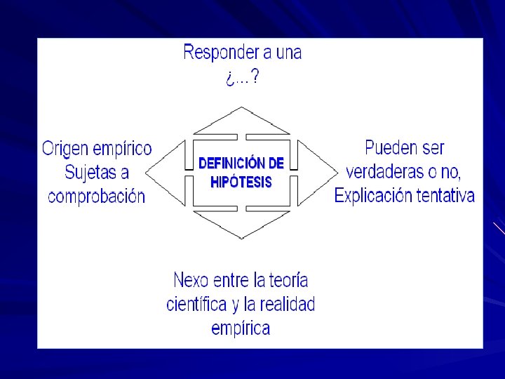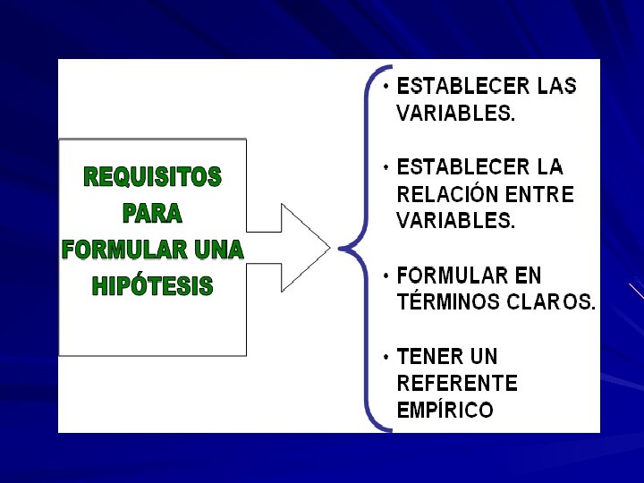La Hipótesis indican lo que estamos buscando o tratando de probar y pueden definirse como explicaciones tentativas del fenómeno investigado o formuladas a manera de proposiciones. QUE SE BUSCA CON LA HIPOTESIS La Hipótesis no necesariamente son verdaderas. Dentro de la Investigación científica, las hipótesis son proposiciones tentativas acerca de las relaciones entre dos o mas variables y se apoyan en conocimientos organizados y sistematizados las cuales están sujetas a comprobación empírica.