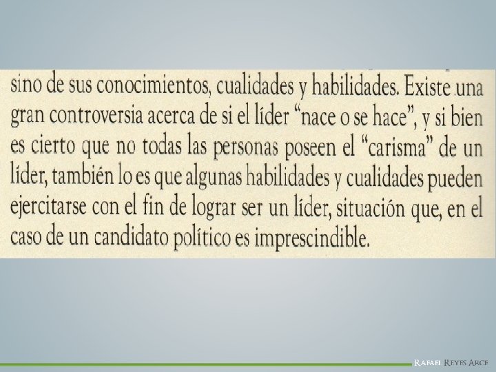 Desarrollo de las caracteristicas personales que potencializan al líder político.