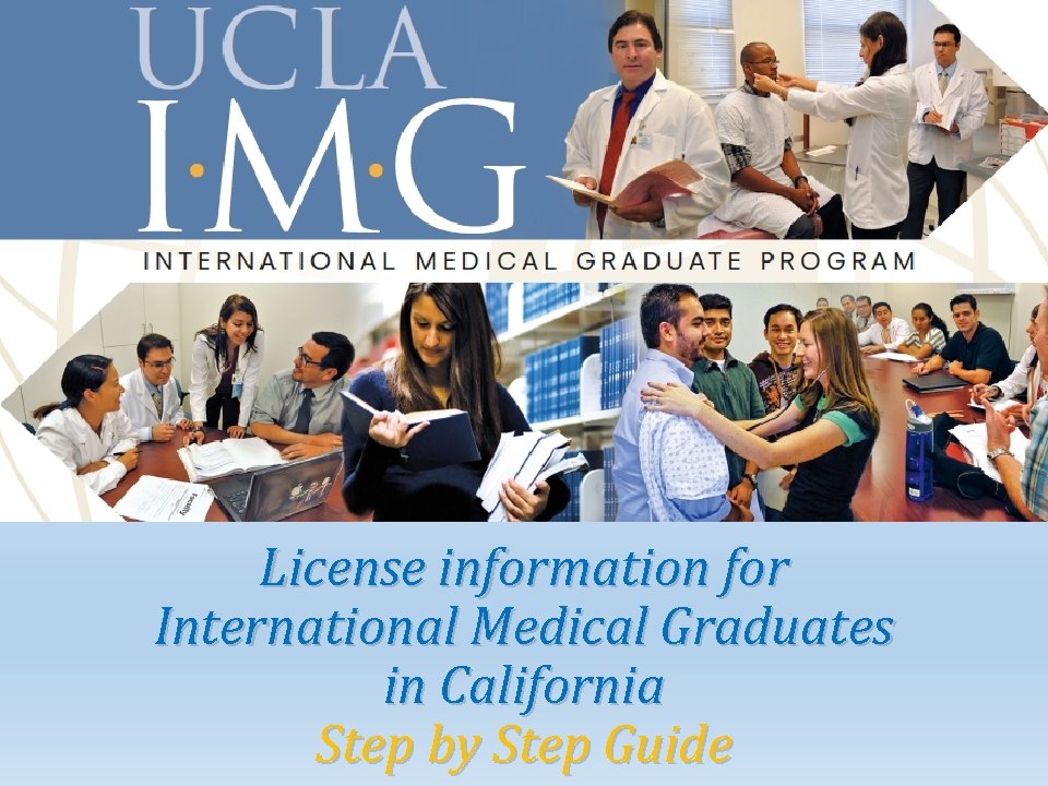 Physician’s and Surgeon’s License Application Checklist 1) Application, fees and fingerprints Application Fee $491 Initial License Fee $808. 00 or Reduced Initial License Fee $416. 50 Application for Physician’s and Surgeon’s License, Forms L 1 A-L 1 F Fingerprints: Live Scan Form 2) Examination Documentation* ECFMG Certification Status Report Official Examination Scores from the Federation of State Medical Boards (FSMB) *IMGs who have been issued a PTAL have already met the educational requirements. Once the postgraduate training and final examination requirements have been met, additional forms will be needed to complete the application for licensure