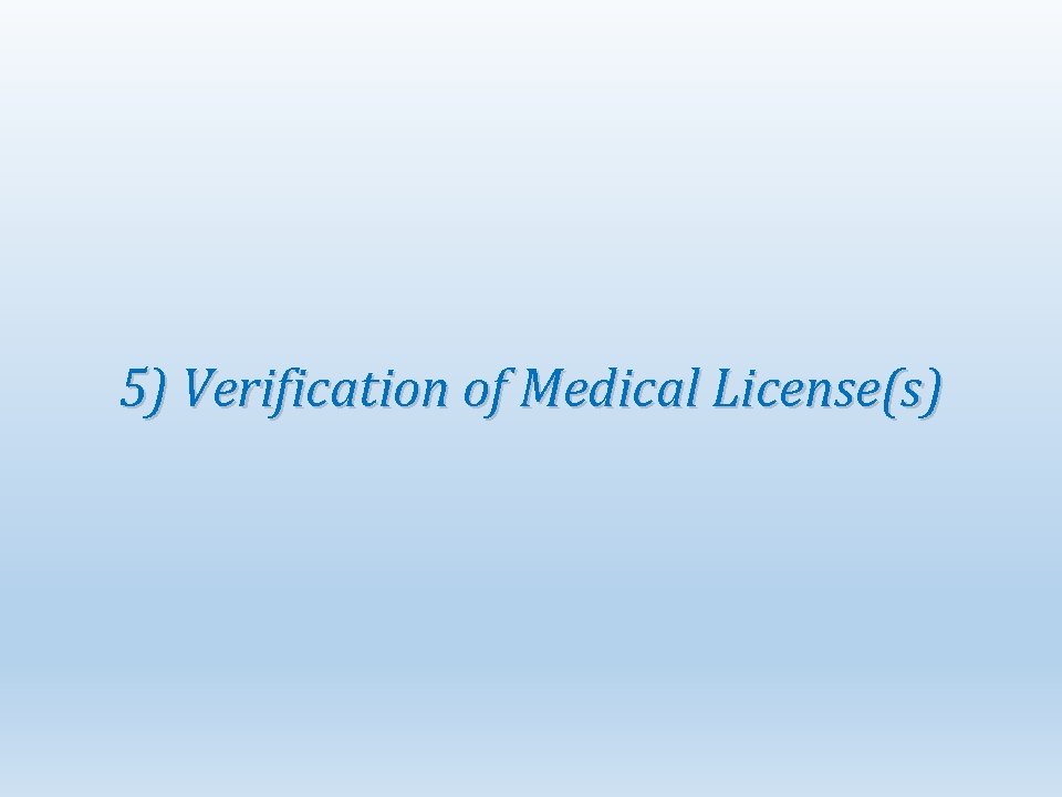 Physician’s and Surgeon’s License Verification (if applicable) • License verification is required from each state or Canadian province in which you hold or have held a medical license • Verification of temporary, training, or provisional license(s) are not required The official license verification must be sent directly from the licensing authority to the Board Address: 2005 Evergreen, Suite 1200, Sacramento, CA 95815 -3831 Phone: (916) 263 -2382 or (800) 633 -2322 Fax: (916) 263 -2487 Website: www. mbc. ca. gov