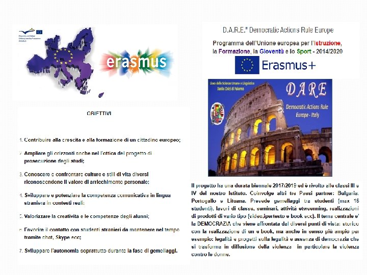 PROGETTI � � � � ERASMUS PLUS ( Prima e Seconda chiave) LEGALITA’ PARI OPPORTUNITA’ ARTISTICO CULTURALI SPORTELLI DISCIPLINARI VALORIZZAZIONE ECCELLENZE POTENZIAMENTO ABILITA’ RICONOSCIMENTI RECENTI 2018 - Primo premio del concorso " XXV anniversario del Beato Padre Pino Puglisi" per il video "Posso dire di no" 2018 - Primo premio STEM: "Femminile Plurale" - Vincitrice: Alessia Zuccarello della IV H 2017 - Premio “Maria Occhipinti"- Vincitore Gabriele Di Matteo della V G 2017 - Partecipazione all’inaugurazione A. S. 2017/18 a Taranto in presenza del Presidente della Repubblica 2016 - Premio “Lia Pipitone" 2016 - Menzione di Merito Premio Legalità 2016 - Prevenire l’illegalità: una videolettera 2015 - Partecipazione con collegamento diretto radiofonico alla trasmissione FAHRENHEIT