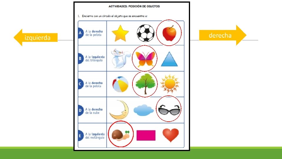 Ahora los vamos a nombrar… 1° 2° 3° 7° 8° izquierda 4° 9° El punto de referencia nos indica si los objetos están a la derecha o izquierda, arriba o abajo. 5° 6° 10° derecha
