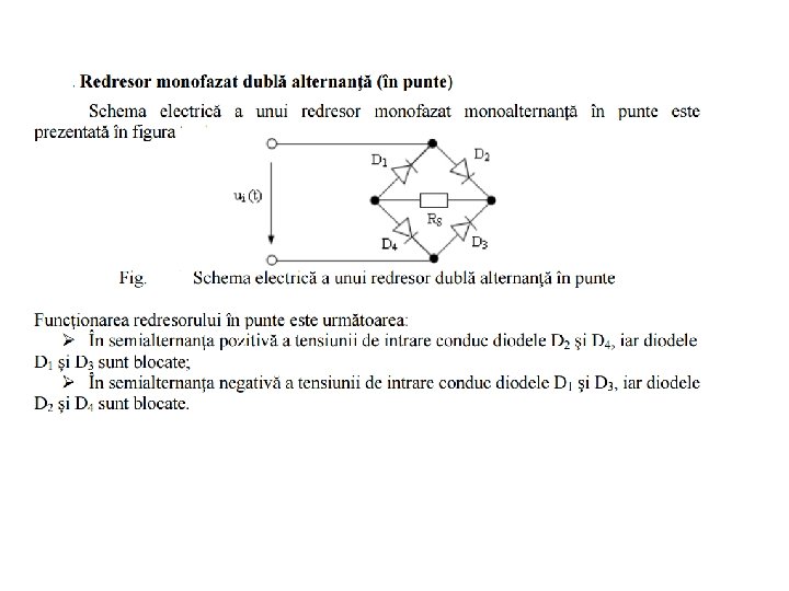 Redresor dublă alternanţă în punte • D 1 şi D 3 sunt deschise în alternanţele pozitive • D 2 şi D 4 sunt deschise în alternanţele negative