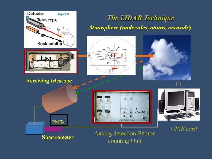 Lidar System Components Photo-detectors (I) Photo. Multiplier Tubes (PMTs) Spectral Range: 110 nm – 1200 nm [lidars: 247 up to ~880 nm] www. hamamatsu. com Pros: Very good conversion efficiency Cons: Only in the UV-VIS-beginning of NIR region ----------------------------------------------------------Photo-detectors (II) Avalanche Photo. Diodes (APDs) Spectral Range: APD-Si: 200 nm – 1100 nm APD-Ge: 800 -1550 nm APD-In. Ga. As [lidars: 900 -1500 nm] Pros: Good conversion efficiency Cons: Bulky, only in the near IR www. hamamatsu. com, www. licel. com