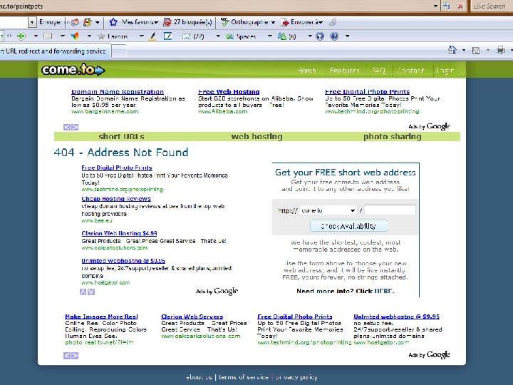 Les Liens Hypertextes l Définition - éléments contenus dans une page HTML. - « référence dans un système hypertexte permettant de passer automatiquement d’un document consulté à un document lié » . l Source vers destination - destination interne : vers un point suivant dans un même document (exemple d’un plan). - destination externe : vers un point extérieur au document (exemple : vers un autre site). l Page d’erreur