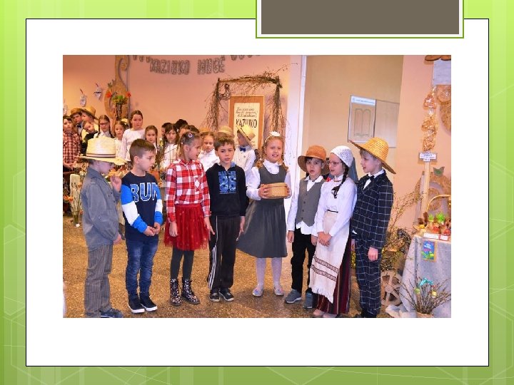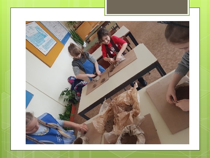 Projekto veiklos: • • • Rudens derliaus šventė; Pavasario šventė- Kaziuko mugė; Gamtamokslinių žinių viktorina Žemės dienai paminėti; Lipdymo iš molio studija; Mokslinė tiriamoji veikla.