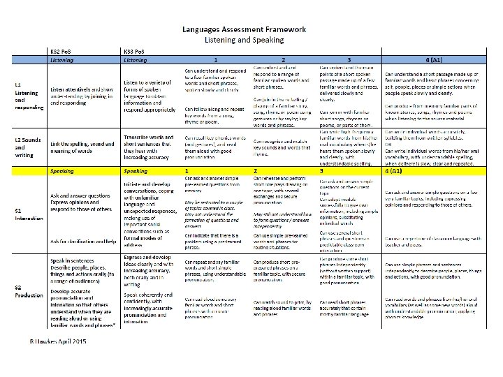 A new assessment framework q based on the requirements of the new Programmes of Study at KS 2 and KS 3 q drawing also on • the CEFR and the Languages Ladder • the KS 2 and KS 3 Frameworks q attempting to avoid some of the pitfalls of the old NC Levels
