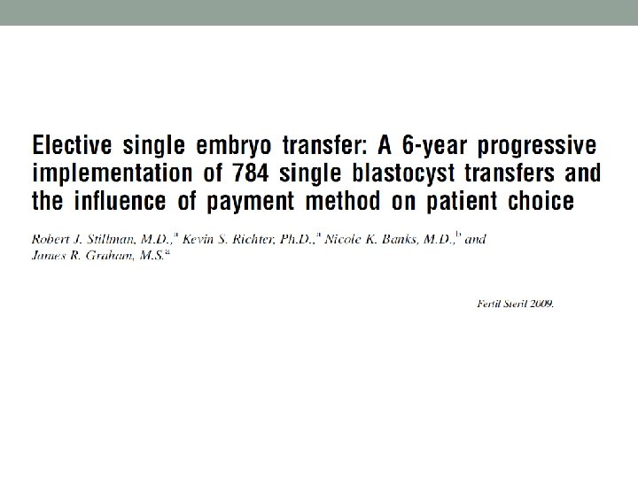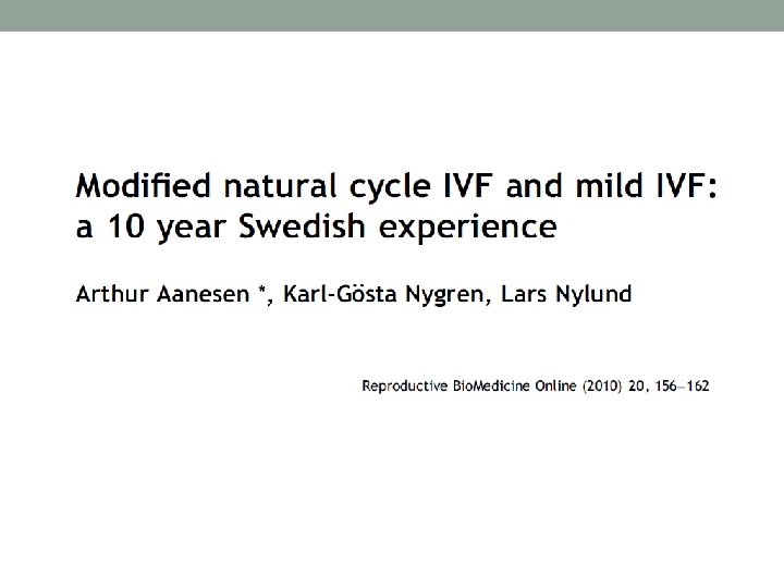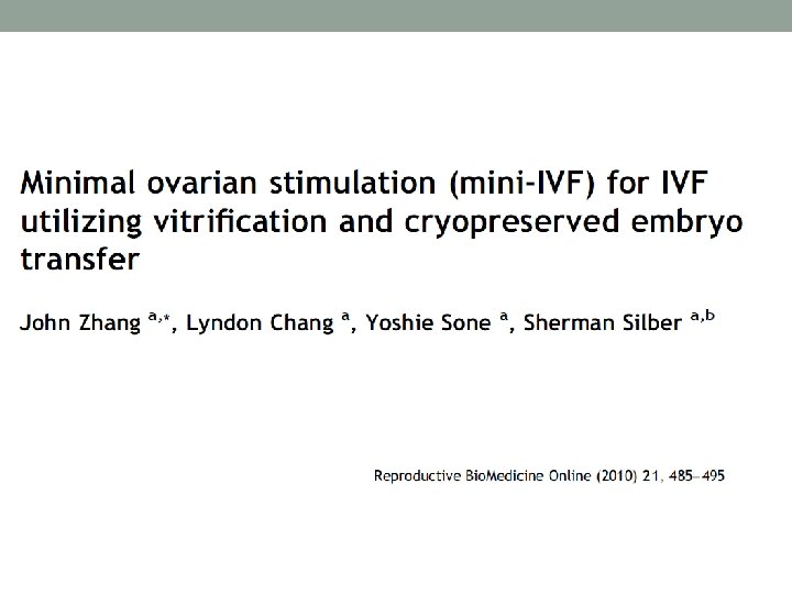 Milder stimulation (2009 -2010) Cycle 177 Age 30, 3 # of oocytes 1, 67 Fertilization rate % 70, 8 Mean transferred embryos 1, 27