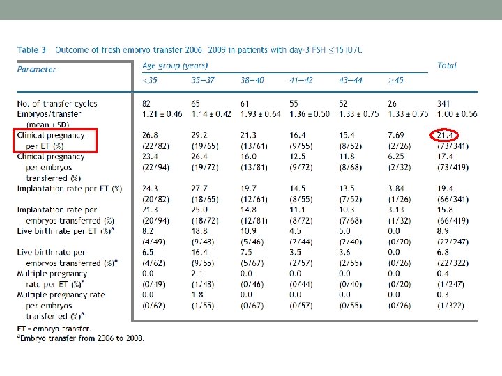 Analog use in EUROFERTIL 2006 -08 Agonist Antagonist Cycles 537 2033 Age 28. 4 31. 5* Mean oocytes 12. 5 9. 7* Transferred embryos 2. 9 2. 6 CPR/ET 43. 7 45. 0 * P<0. 05