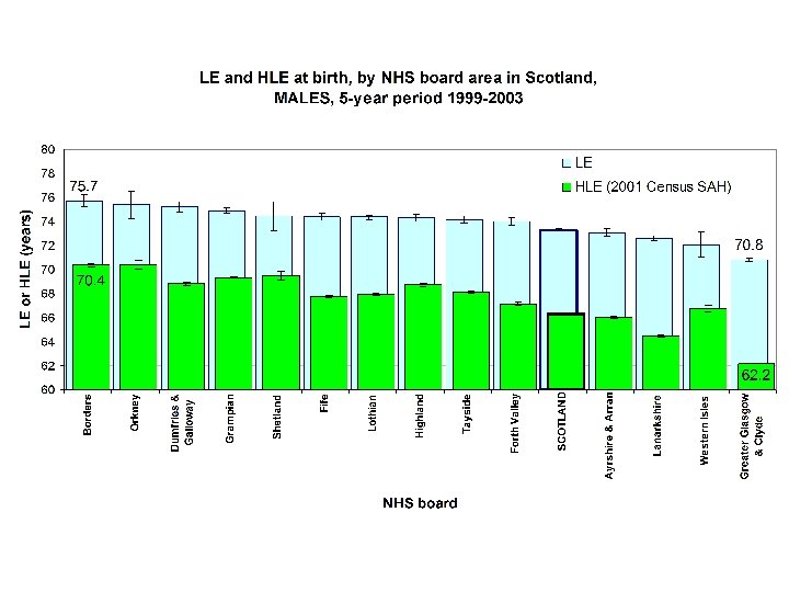 Intermediate zones in Scotland (average M+F population ~4, 000) HLE not calculated LE only presented for M or F where: 5 -year populations 5, 000 5 -year deaths 40.
