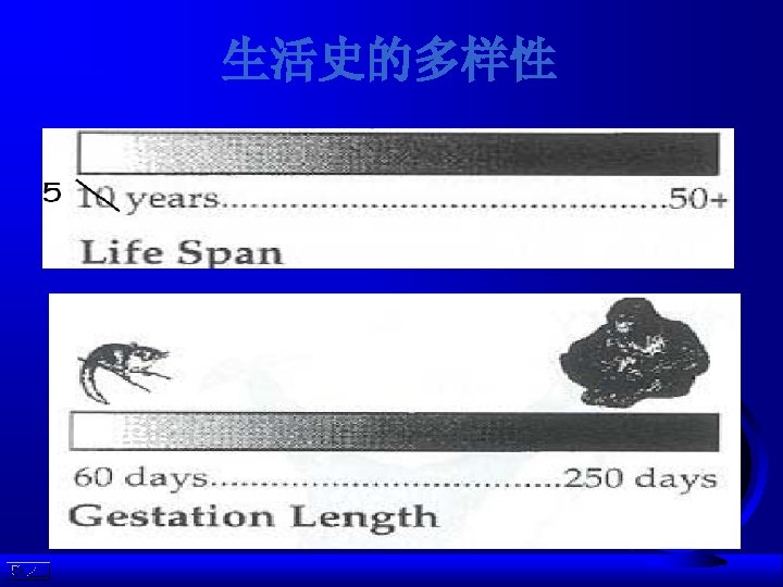 An organism’s life history is its lifetime pattern of Lire history growth and reproduction. Life history includes: body size, growth rate, reproduction and longevity. The observed in the life history patterns of different species is vast. 1、生物的生活史:一生中生长和繁殖的模式。 生活史 2、生活史的关键组分:个体大小、生长率、繁殖和寿命。 3、不同种类其生活史类型的变异是巨大的。
