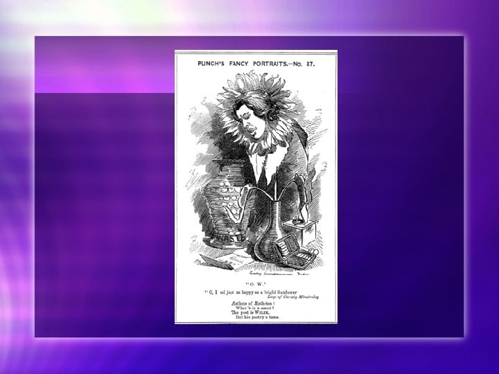 Aesthete l Languid appearance l Romantic style of clothing l Strong attraction to blue china l Carried/Sniffed a flower l Model for hero, Bunthorne, in Gilbert and Sullivan’s Patience