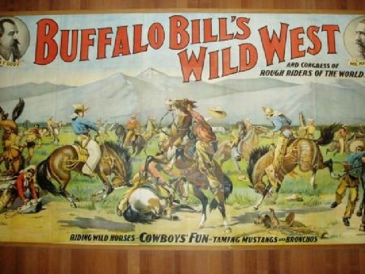 Buffalo Bill’s Wild West Show • William “Buffalo” Cody (Buffalo Bill) Created a Wild West Show • Created Reenactments of Frontier Life in the West • Show Played in the United States and Europe!!!