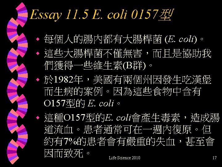Essay 11. 5 E. coli 0157型 Life Science 2010 16