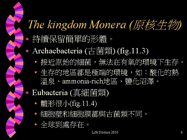 Life Science 2010 Chap. 11 Diversity I: The Monera, Protista, Fungi, and Viruses 鄭先祐(Ayo) 製作 Life Science 2010
