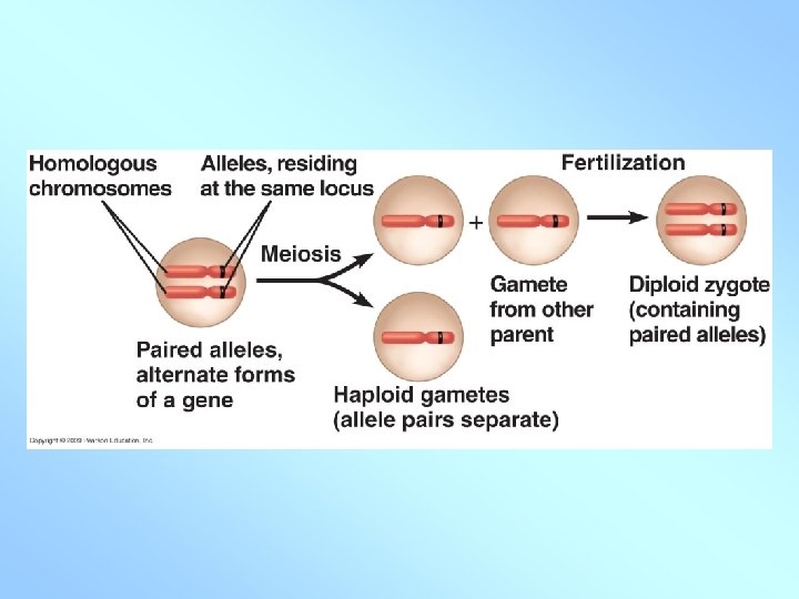 Many genes have more than two alleles in the population Multiple alleles • More than two alleles are found in the population • A diploid individual can carry any two of these alleles • The ABO blood group has three alleles, leading to four phenotypes: type A, type B, type AB, and type O blood • ABO blood types are inherited through genes on chromosome 9 Copyright © 2009 Pearson Education, Inc.