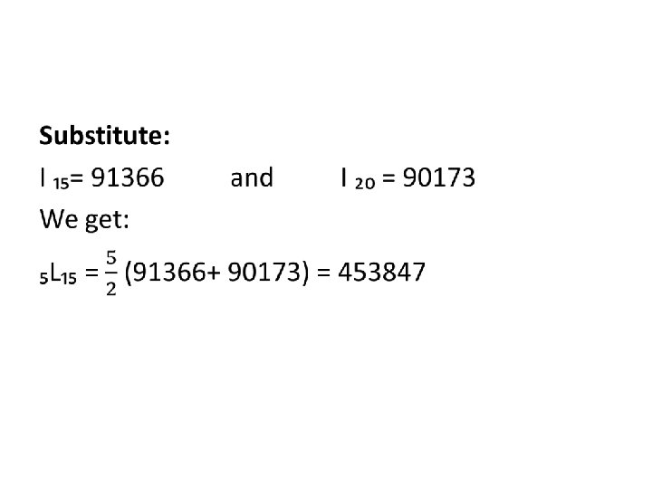 Ages Column 2 X to X + n nqₓ 15 -19. 01306 20 -24. 03161 I ₁₅= 91366 Column 3 Column 4 lₓ ndₓ 91366 1193 90173 2851 Column 5 n. Lₓ 453847 443736 I ₂₀ = 90173 ₅d₁₅ = I₁₅ - I ₂₀ = 91366 - 90173 = 1193