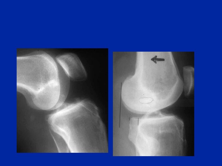 Tiroir antérieur radiologique Résultat d’une étude sur 500 cas (voir chapitre spécial dans les conférences supplémentaires) Genoux normaux • TACI = 2, 1 ± 2, 6 • TACE = 10, 5 ± 2, . 5 Ruptures du LCA • TACI = 10, 4 ± 4, 3 • TACE = 18, 5 ± 5, 1 Ce qui compte, c'est la différence par rapport au genou sain