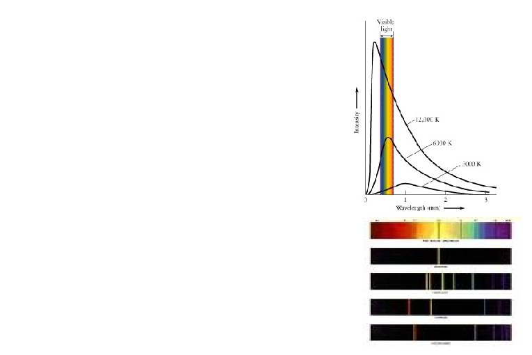 1. Hotter objects emit more total radiation per unit surface area. 1. Hotter objects have peak emissions at shorter wavelengths (they will appear “bluer”) Energy emitted per square meter Rules for Thermal Emission by Opaque Objects 5000 K 4000 K 3000 K Wavelength