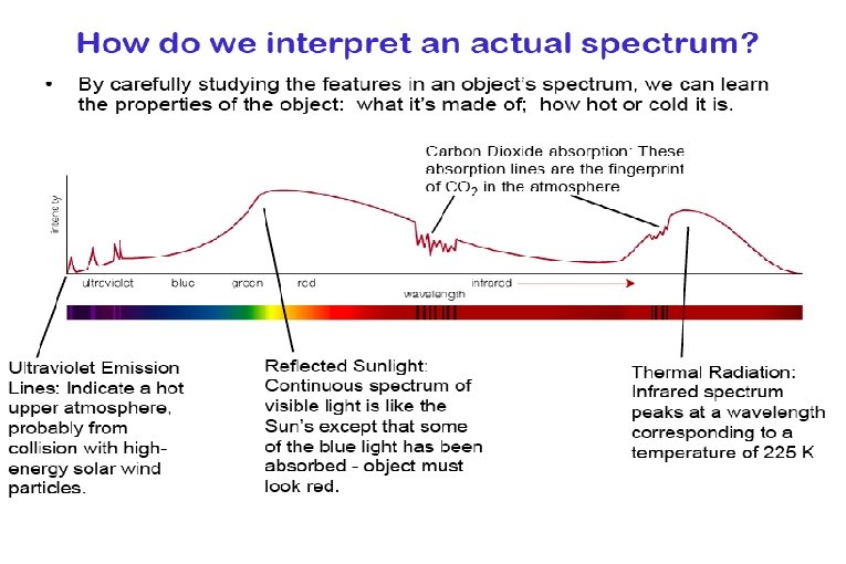 Thermal Emission A hot, dense glowing object (solid or gas) emits a continuous spectrum.