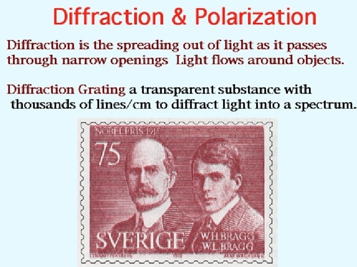Polarization (cont. ) • Polarizers are made of long strands of molecules that are all aligned parallel to each other. • Look at the blue areas in the illustration.