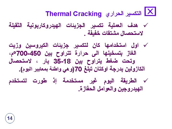 Light Ends Unit H 2 o. O Crude Oil Desaltin g Overhead distillate Full range naphtha gas-380°F Kerosene (380 -480°F) Light Gas Oil (480 -610°F) Brine Na. Cl +H 2 O Heavy Gas Oil (610 -690°F) Atmospheri c Distillation Unit Light Vacuum Gas Oil (690750°F) Atmospheric Residue Atmospheri c Residue 12 Vacuum Distillation Unit 10 mm. Hg Heavy Vacuum Gas Oil (750985°F) Vacuum Residue (+1000°F)