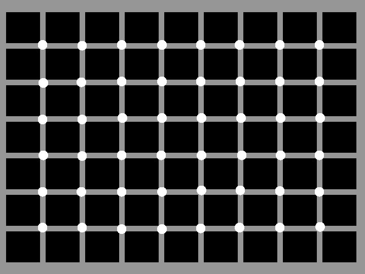 Example #1 The twinkling black spots do not actually exist in the intersections of the gray lines on the next slide. You can discover this by focusing on one particular intersection. The spots appear because of the way the cones and rods in your eyes respond to light.