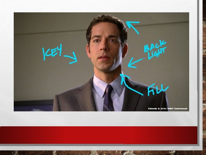 Three-point lighting is the standard method used in visual media such as film, still photography and computer-generated imagery. The technique uses three lights called the key light, the fill light and the back light. Three Point Lighting