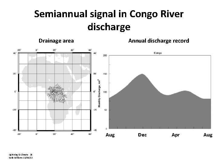 Semiannual signal in Congo River discharge Drainage area Annual discharge record Aug Lightning & Climate - 25 Earle Williams 12/05/12 Dec Apr Aug