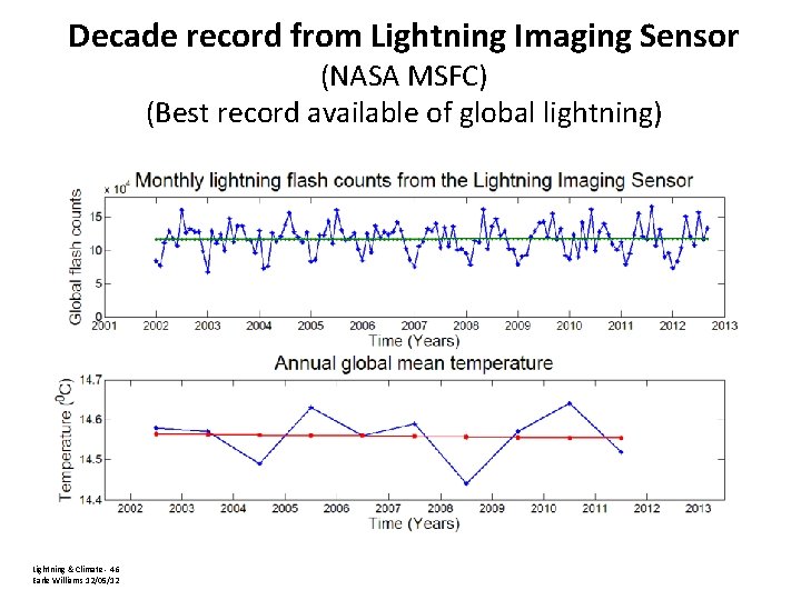Decade record from Lightning Imaging Sensor (NASA MSFC) (Best record available of global lightning) Lightning & Climate - 46 Earle Williams 12/05/12